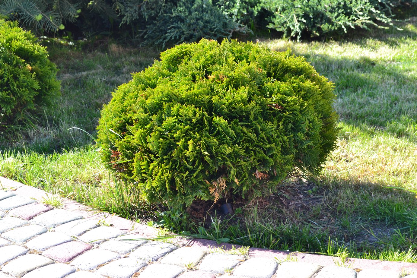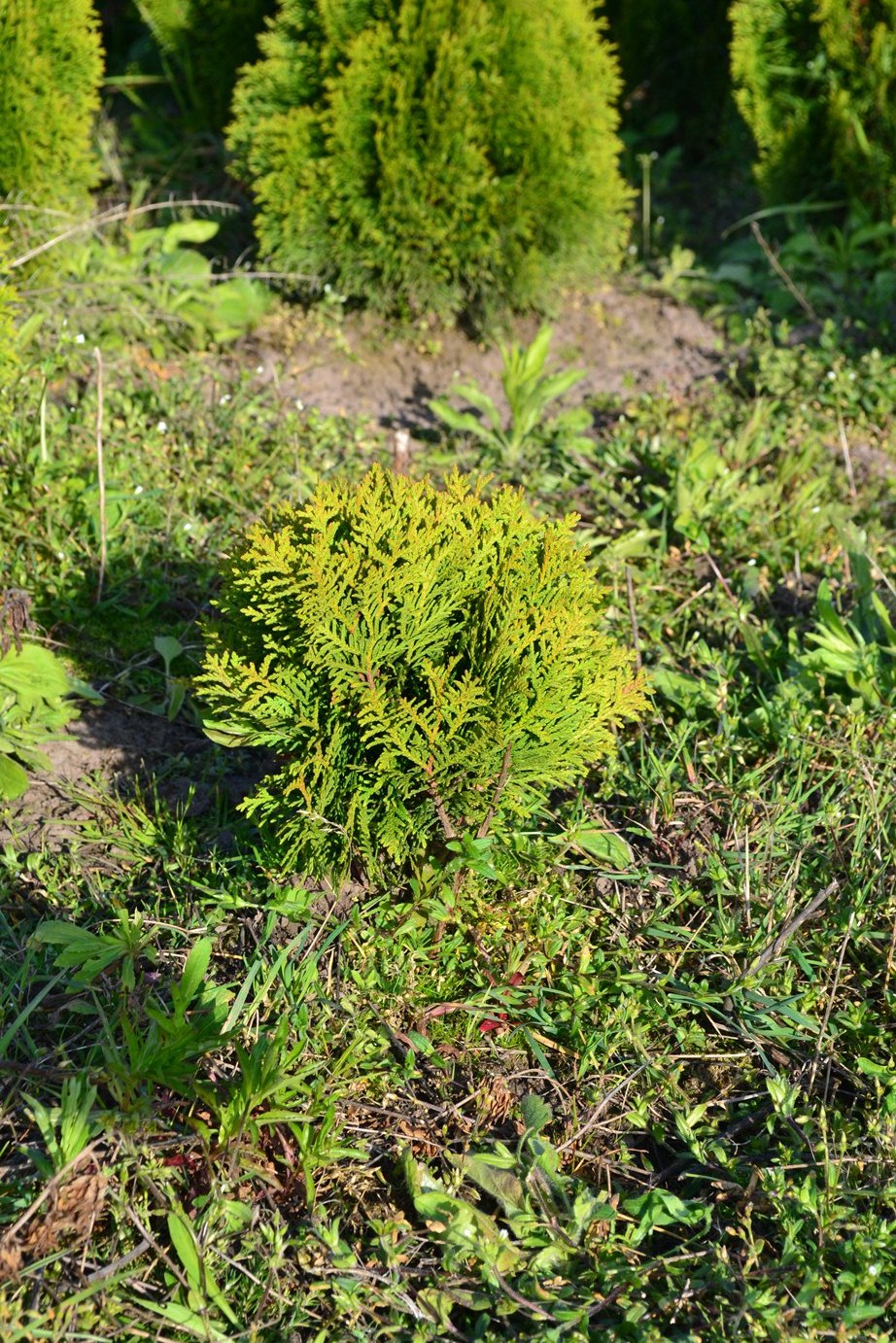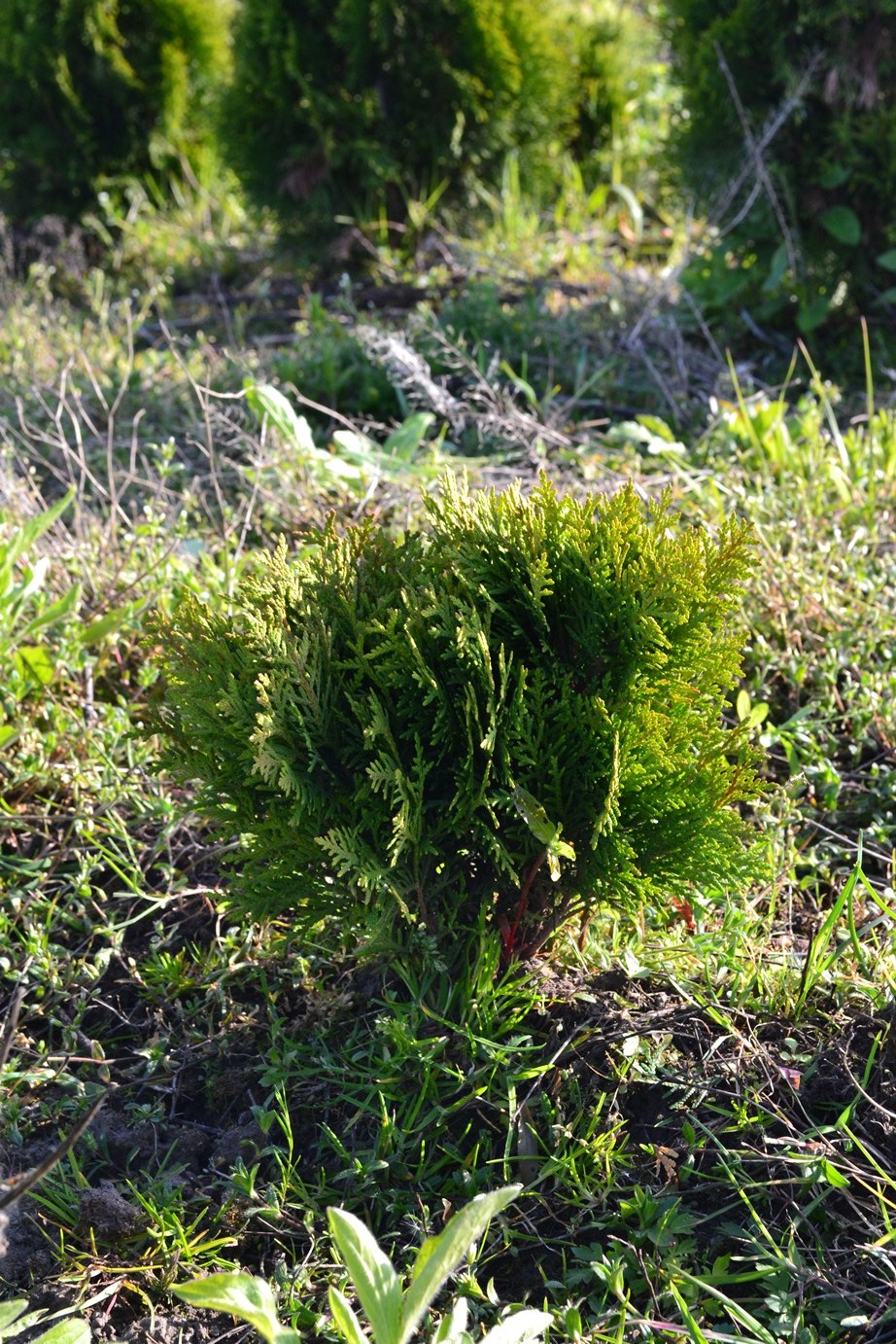 Полив: протягом першого місяця після посадки рекомендується проводити поливати раз на тиждень по 1 відру на рослину. У суху пору сезону полив по 1.5-2 відра на рослину 2 рази на тиждень. Туї люблять вологі ґрунти, на сухих і в тіні крони рідшають.